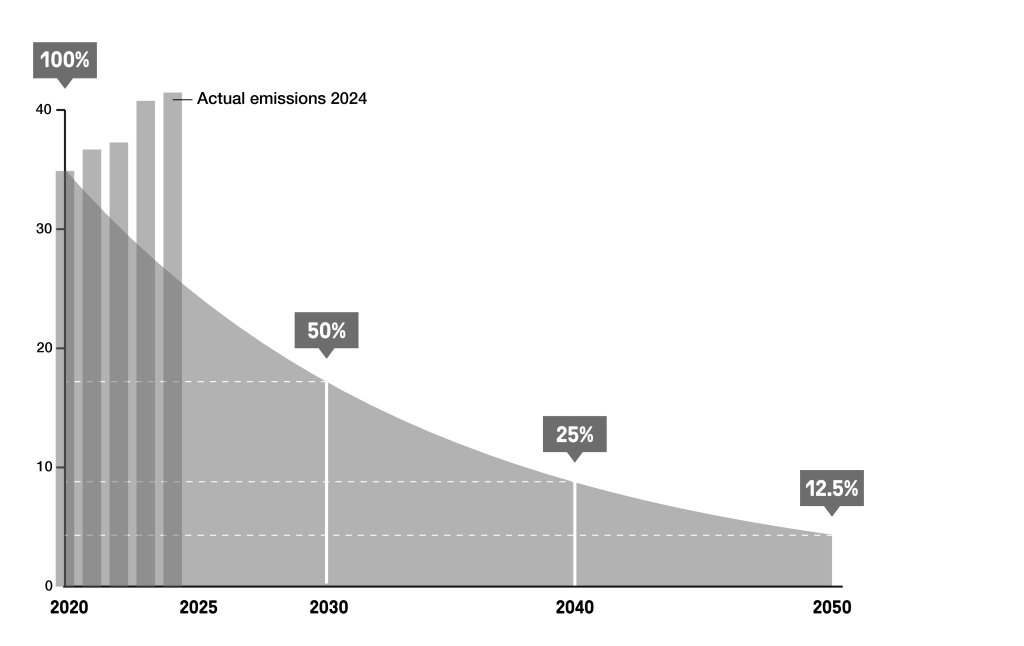 Initiativet bygger på en enkel men krävande princip – För att hålla oss inom 1,5 °C måste de globala utsläppen halveras varje decennium.