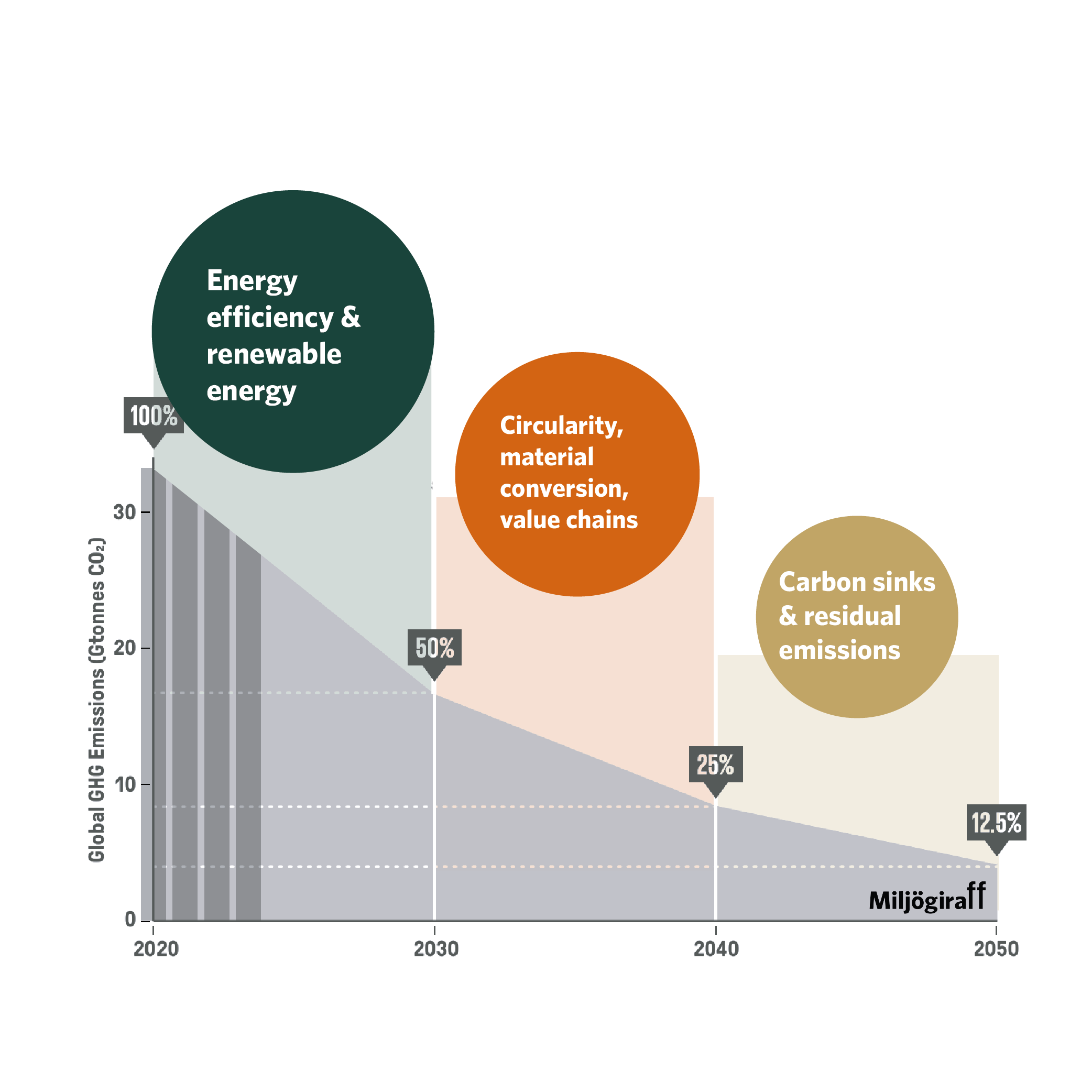 2030–2040: andra halveringen – cirkularitet, material och värdekedjor