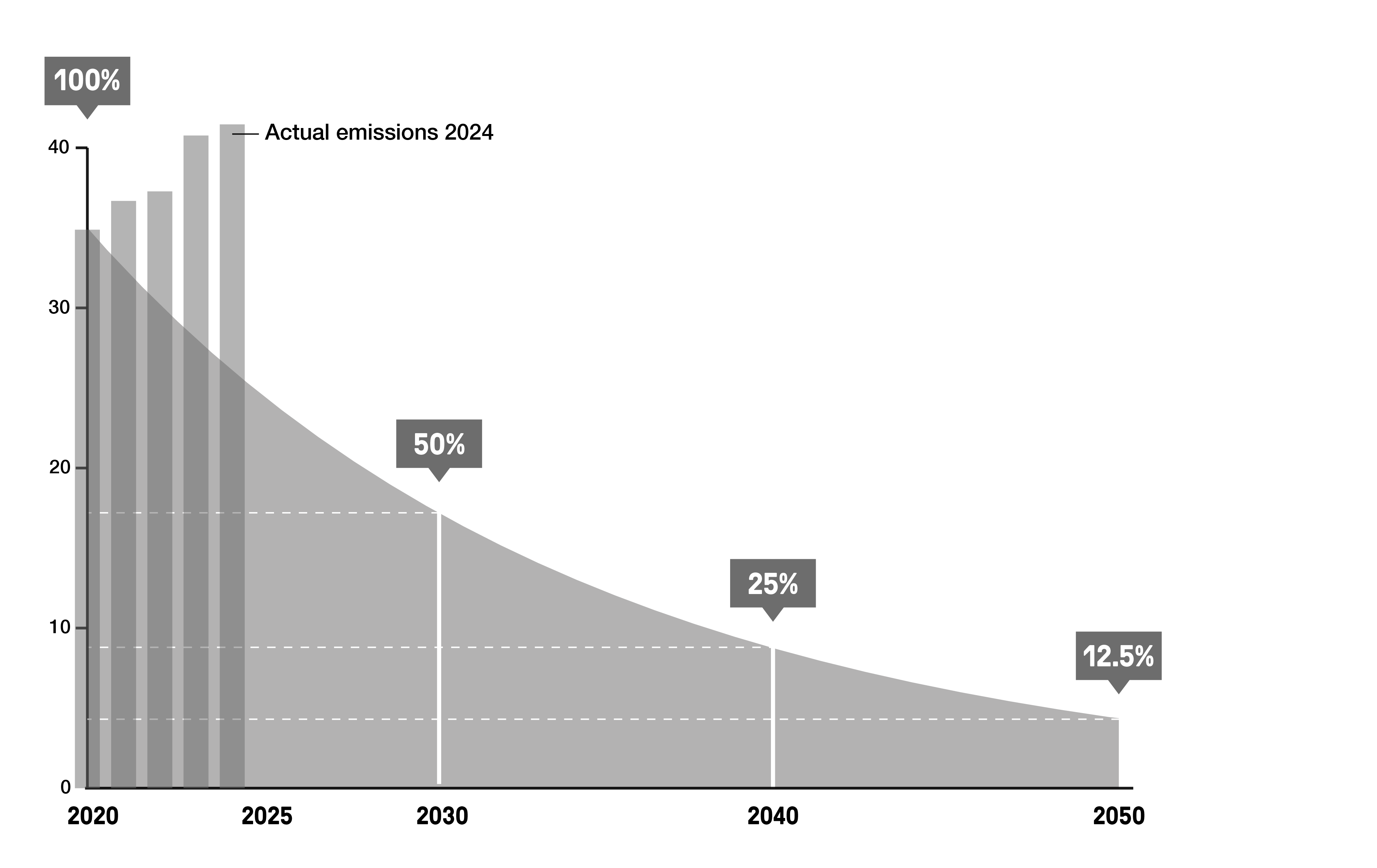 Initiativet bygger på en enkel men krävande princip – För att hålla oss inom 1,5 °C måste de globala utsläppen halveras varje decennium.