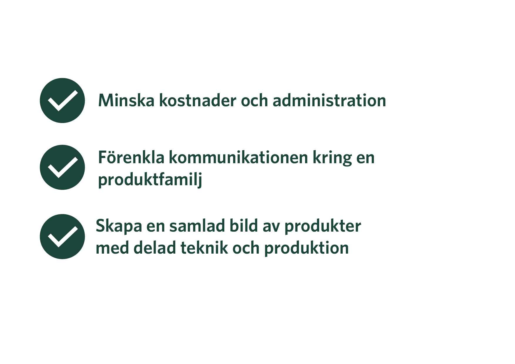 Syftet är att möjliggöra en rättvisande representation av en produktfamilj som bygger på samma teknik, struktur och produktionslogik.