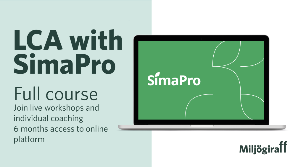 Miljögiraff har utvecklat en digital kurs om LCA och SimaPro, den finns både som helt digital kurs eller tillsammans med en LCA expert över teams.
