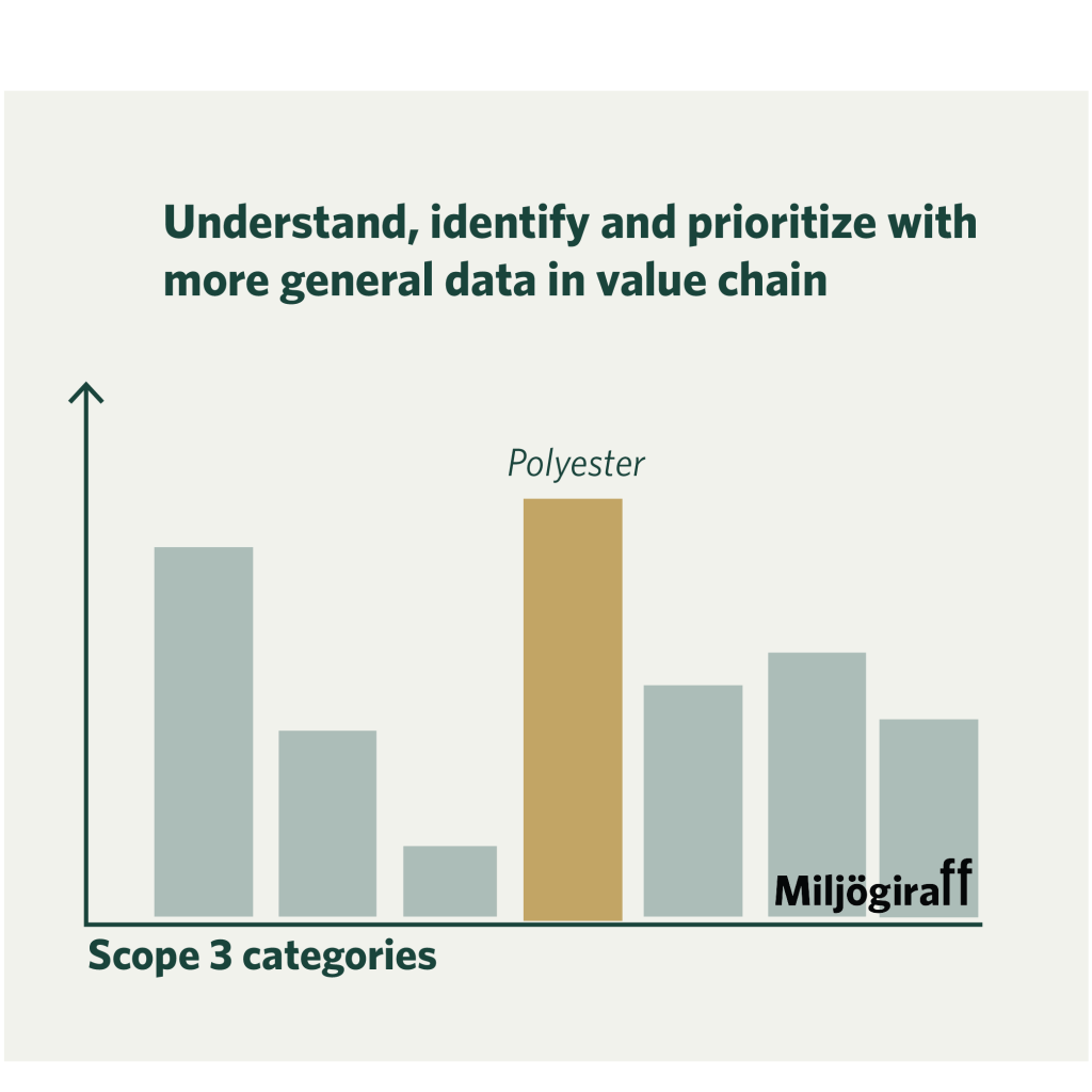 Baslinje för hela Scope 3: Skapa en komplett beräkning av Scope 3 med generella data som ger överblick och prioritering av vad mer specifika data krävs.